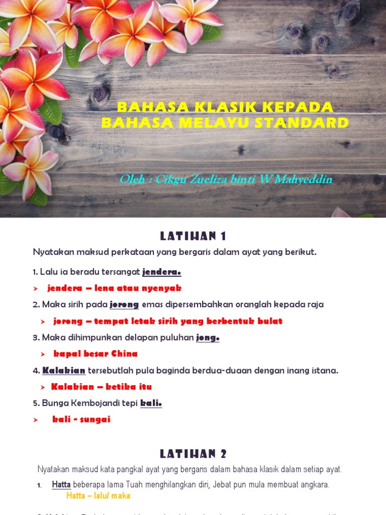 Contoh Bahasa Melayu Klasik Ke Bahasa Melayu Standard Unit 7 Bahasa Melayu Klasik Dan Persuratan Melayu Ppt Download. Teknik menjawab bahasa melayu bm spm kertas 1 dan 2 kssm pu penukaran bahasa melayu klasik kepada bahasa melayu standard pu. Modul Menukarkan Bahasa Melayu Klasik kepada Bahasa Melayu Standard Jawapan Burung Terbang Dipipiskan Lada dan Kepimpinan Melalui Teladan Monotus 1.